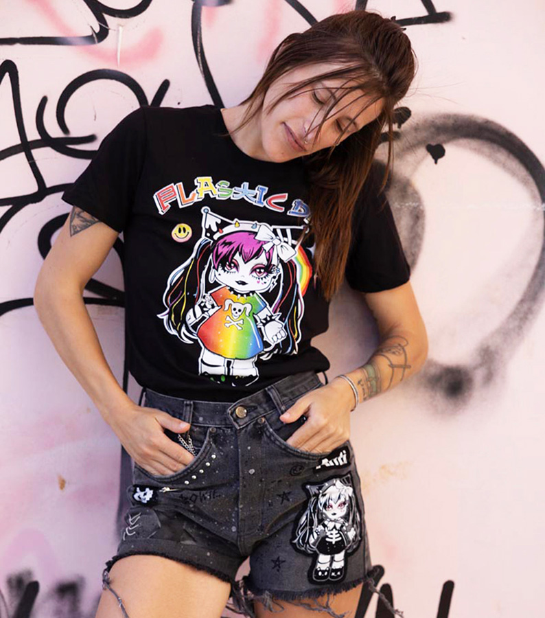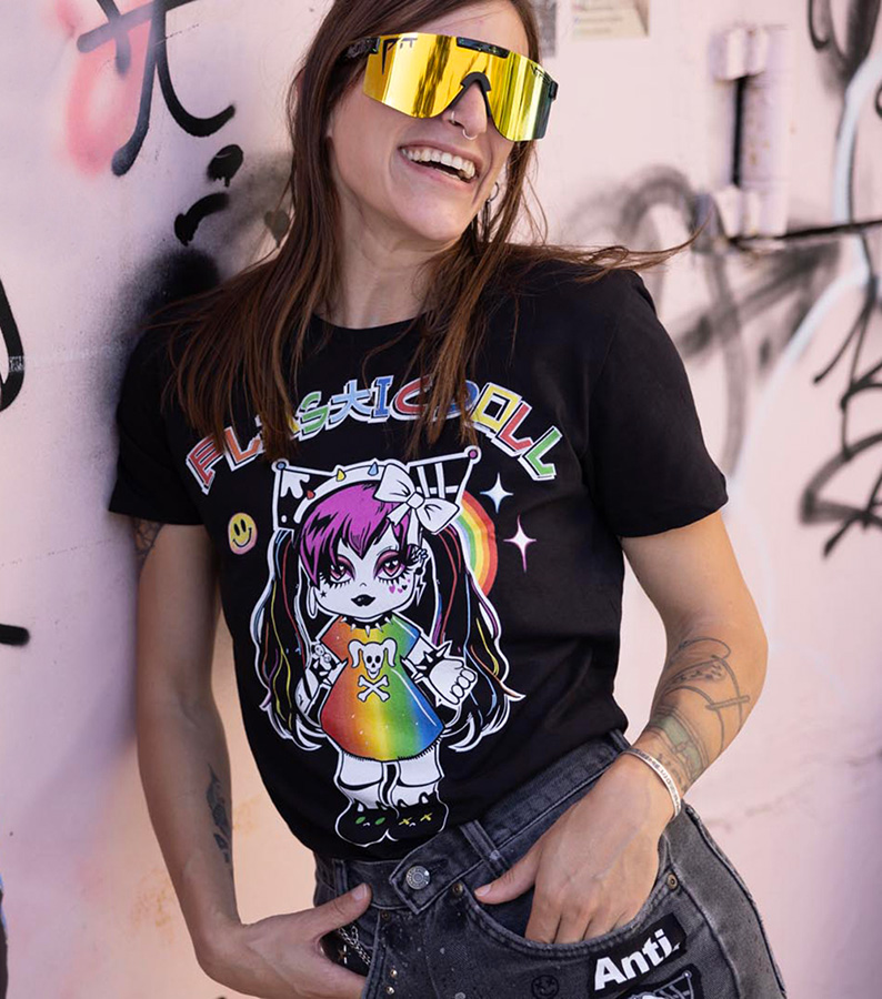 Plastic Doll Rainbow Black T shirt – S