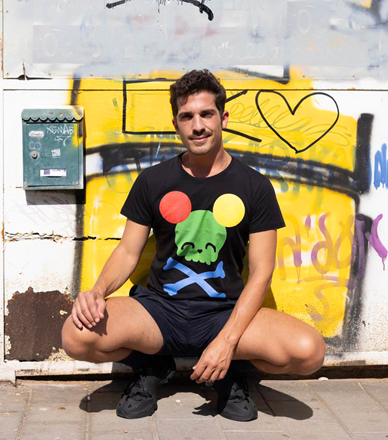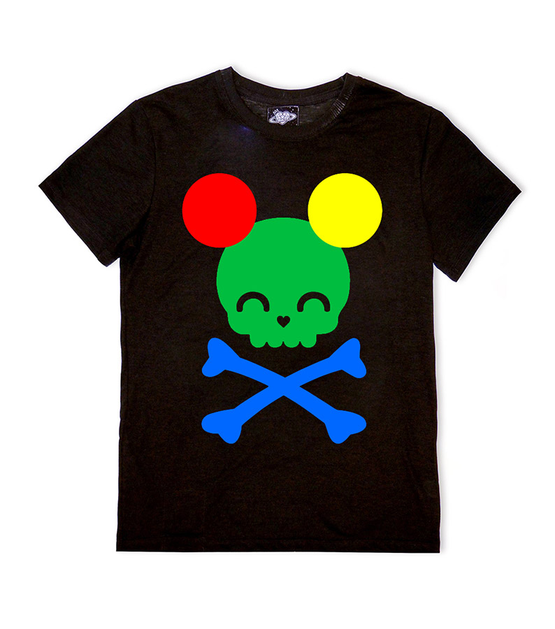 A unique unisex black T shirt from our Samples collection with our iconic all over ‘Rainbow Mickey’ Print.