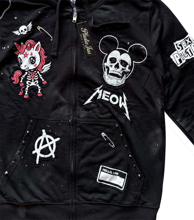 With Patches, Cuts, Silver Chains, Silver stars and Silver studs!